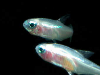 | ネオン・テトラのアルビノ品種、透明感のある涼しげな魚。 体形異形の個体が比較的多いので購入の際は体形に注意。 |